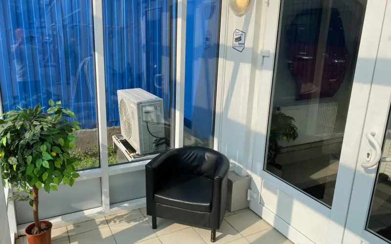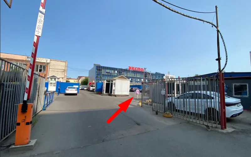 Заезд с проспекта Юрия Гагарина. Проезжаете автомойку, и между двумя шиномонтажами, под наш шлагбаум (днём он всегда открыт).