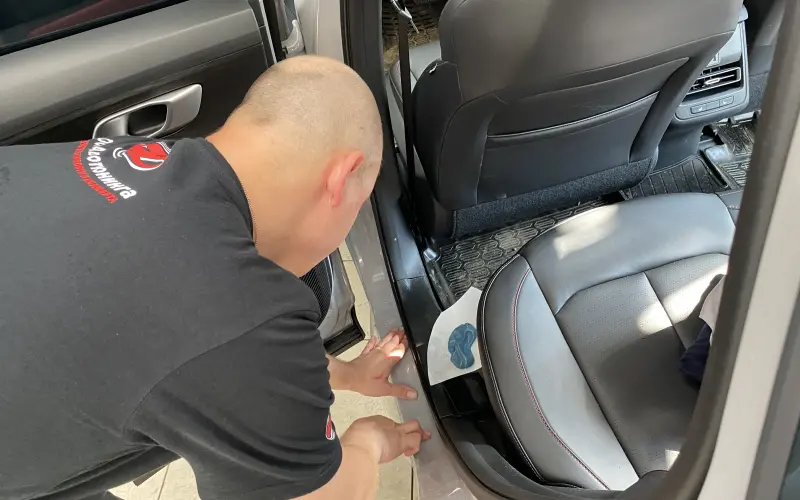 автомобиль тщательно моется и обезжиривается. Все зоны, подлежащие оклейке, очищаются специальным составом.