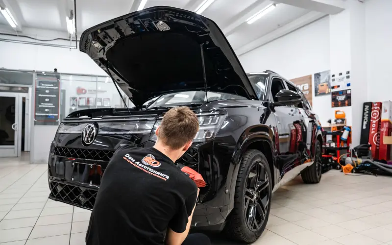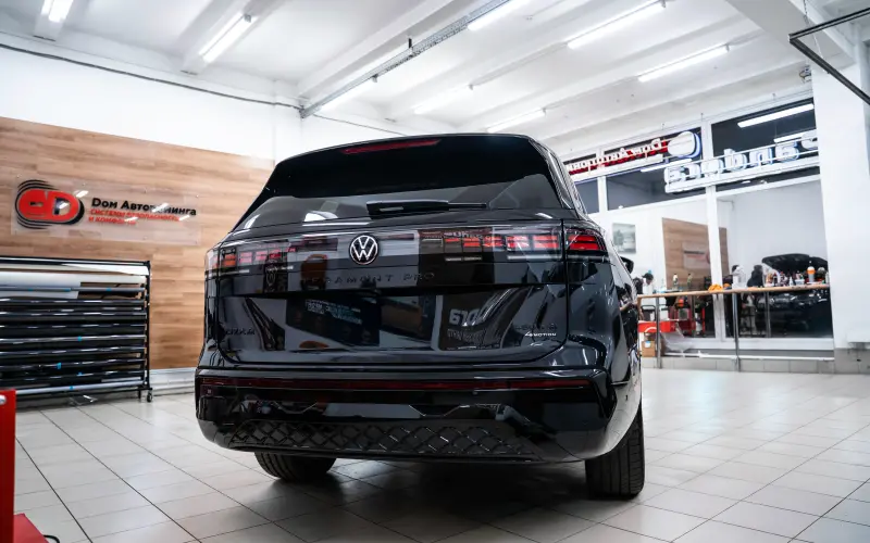 Владение черным автомобилем — это всегда компромисс между эффектным внешним видом и сложностью ухода. На черном лаке предательски заметна даже мельчайшая «паутинка» от моек, сколы и царапины. Именно поэтому к нам в студию Dом Автотюнинга заехал новый, статный Volkswagen Teramont Pro черного цвета.