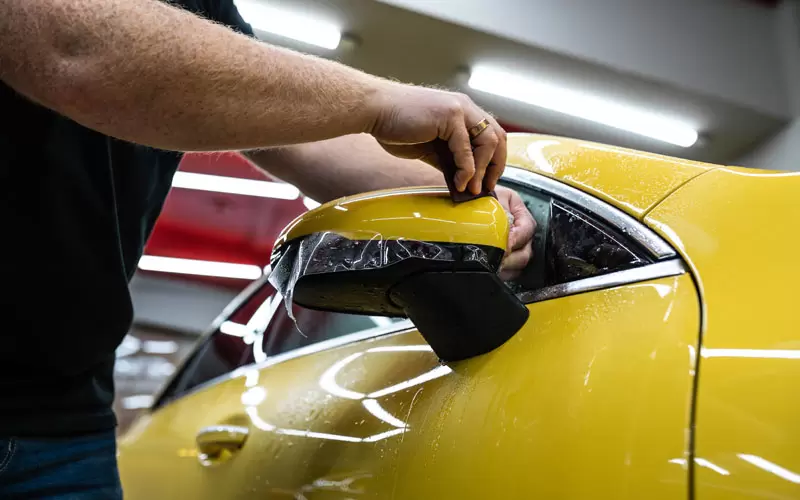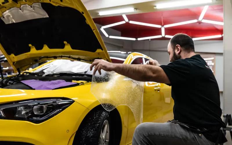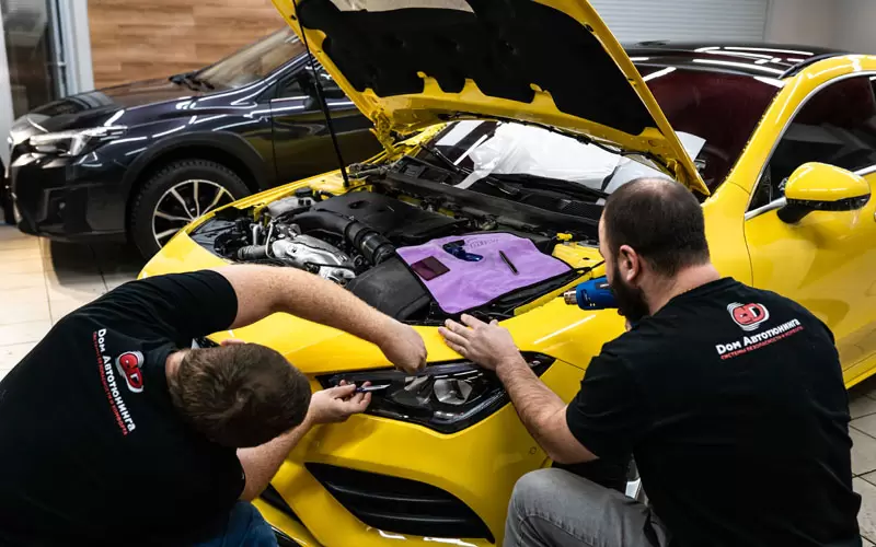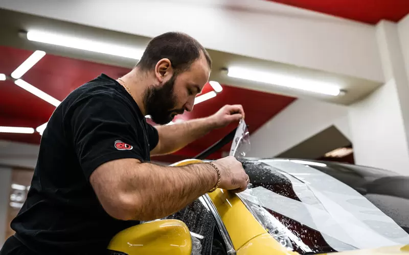 Использование прозрачной пленки: Прозрачная антигравийная пленка была выбрана специально, чтобы сохранить насыщенный жёлтый цвет автомобиля. Она практически незаметна, но при этом отлично выполняет свои защитные функции.