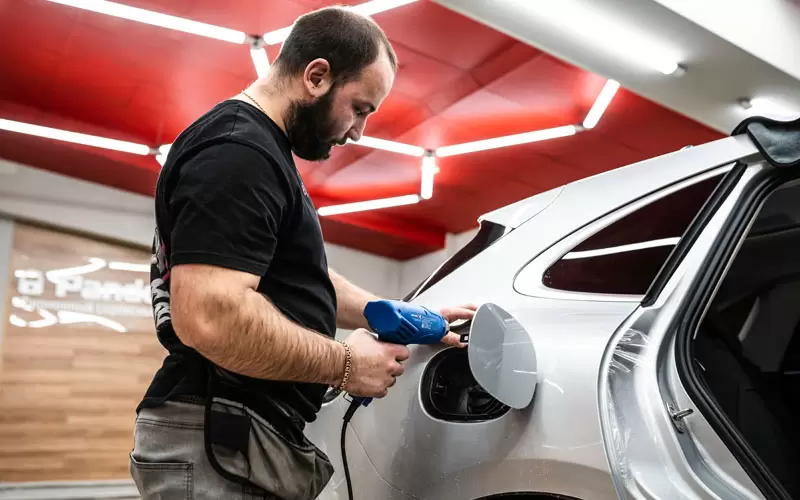 Работа заняла у нас пять дней, в течение которых мы тщательно подготавливали поверхность кузова, аккуратно наносили пленку и следили за тем, чтобы она легла идеально ровно, без пузырьков и складок. Особое внимание уделили задним фонарям, которые мы предварительно отполировали, чтобы добиться максимального блеска и гармоничного сочетания с защитной пленкой.