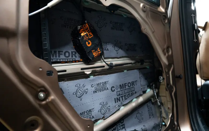 В студии «Дом Автотюнинга» мы решили эту проблему комплексно — выполнили полную шумоизоляцию дверей и дверных карт с применением премиальных материалов.