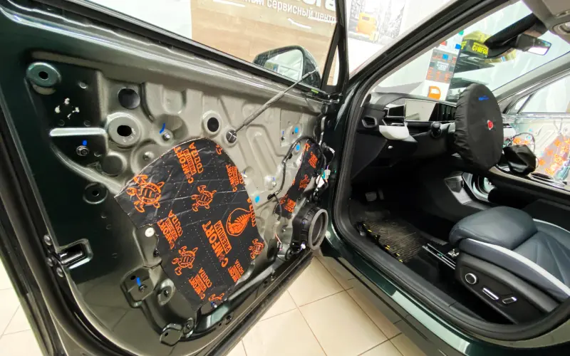 Geely Atlas — современный и технологичный кроссовер, однако даже ему присущ некоторый уровень дорожного и внешнего шума. Владелец этого автомобиля обратился в нашу студию с целью повышения акустического комфорта. Мы выполнили профессиональную обработку дверных зон, что позволило значительно снизить уровень проникающих шумов и вибраций.