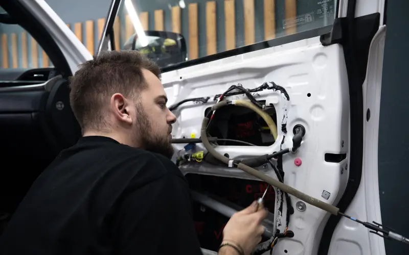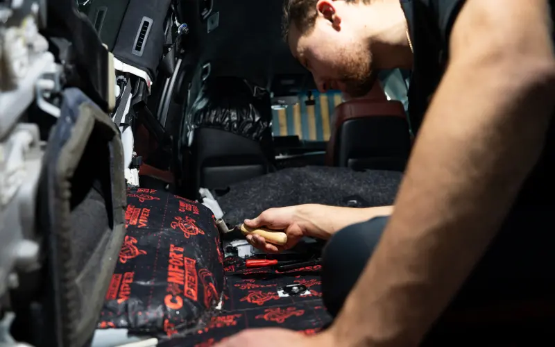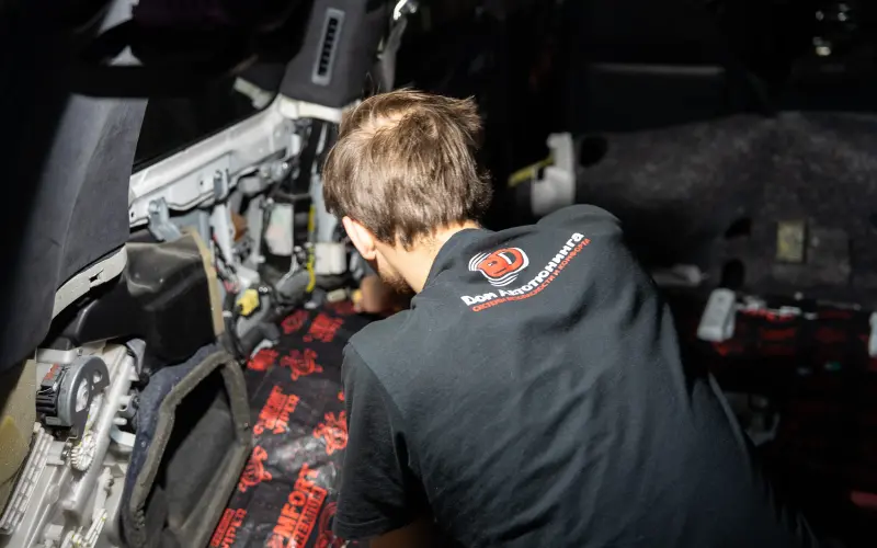 - в двери, багажник и локера смонтировали Комфорт‑Мат с аккуратной прикаткой.сборка: восстановили все элементы, проверили работоспособность систем.